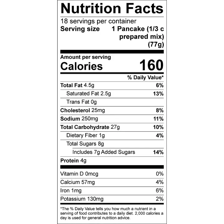 - 19 oz Pancake and Waffle mix, Makes 18 Pancakes.