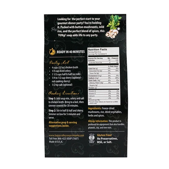 Contains:Â Freeze-dried mushrooms, rice, dried vegetables, herbs & spices